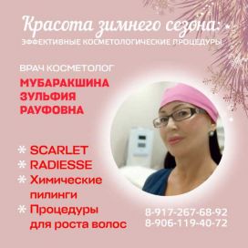 • Scarlett • Radiesse • Химические пилинги • Биоревитализация • Процедуры для роста волос Стоимость процедур можно уточнить по телефонам: 8-917-267-68-92 8-906-119-40-72
